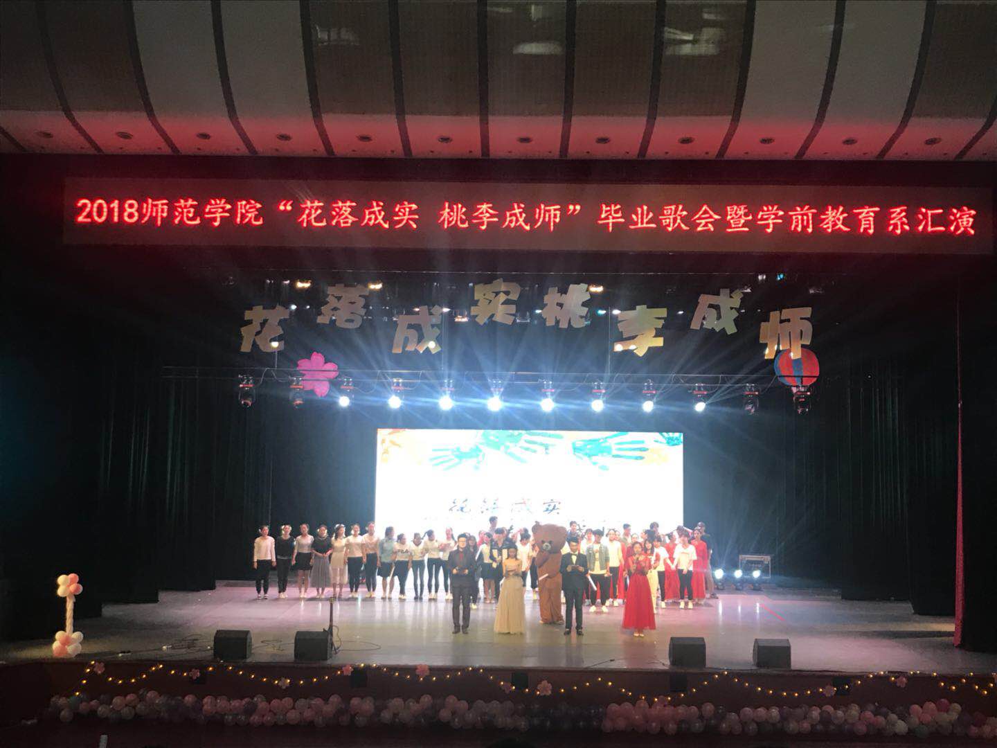 2018年5月16日,青岛大学师范博天堂 “花落成实 桃李成师” 2018届毕业歌会暨学前教育专业汇报演出在青岛大学剧院隆重举行。师范博天堂 党委副书记王成海、全体学工人员、学前教育系全体教师及部分专业师生共同观看了本次演出。