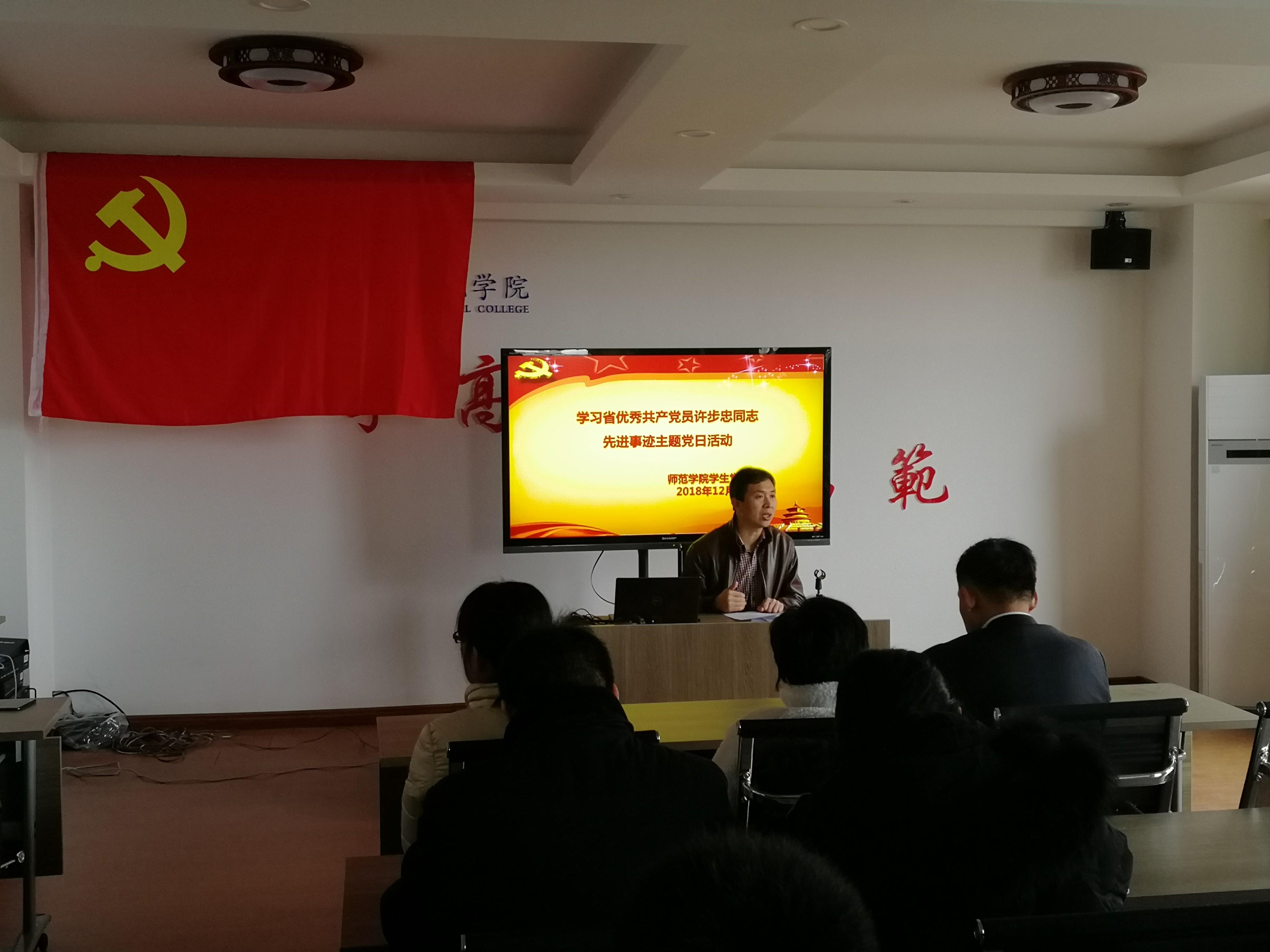 2018年12月7日下午,师范博天堂 学生党支部在德润楼201会议室召开“学习优秀共产党员”主题党日活动,会议由学生党支部书记赵炜主持。