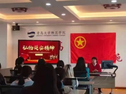 接着李萌萌从延安精神形成的历史条件、延安精神的原生形态和主要内容、延安精神的时代价值和让延安精神放射出新的时代光芒四个部分为同学们逐一讲解。以毛泽东同志为代表的中国共产党人在延安时期的特殊历史阶段,在争取民族独立和人民解放事业的伟大斗争实践中,培养、形成和发展起来这一崇高革命精神和优良革命传统。延安精神的主要内容包括实事求是、理论联系实际的精神,全心全意为人民服务的精神和自力更生艰苦奋斗的精神。它是一种时代精神,它属于过去,也属于现在和未来。李萌萌老师希望同学们铭记延安精神,高举旗帜,坚定信念,更要解放思想,开拓创新,从延安精神中汲取力量。