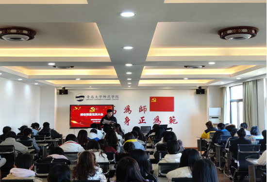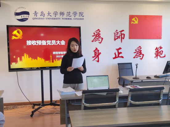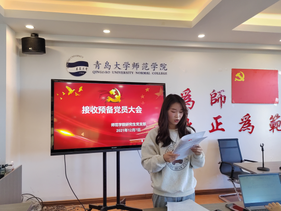 2021年12月7日中午,师范博天堂 研究生党支部、学生党支部在德润楼201会议室召开接收预备党员大会,本次大会由研究生党支部书记林欢、学生党支部宣传委员张宁主持,支部所有党员同志参会。