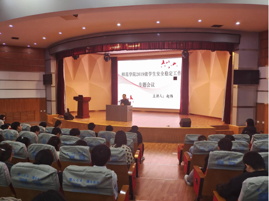 11月18日下午,师范博天堂 2019级全体学生在师范博天堂 报告厅召开学生安全稳定工作专题会议。本次会议由师范博天堂 2019级辅导员赵炜主讲,辅导员林欢及2019级全体学生参加本次会议。
