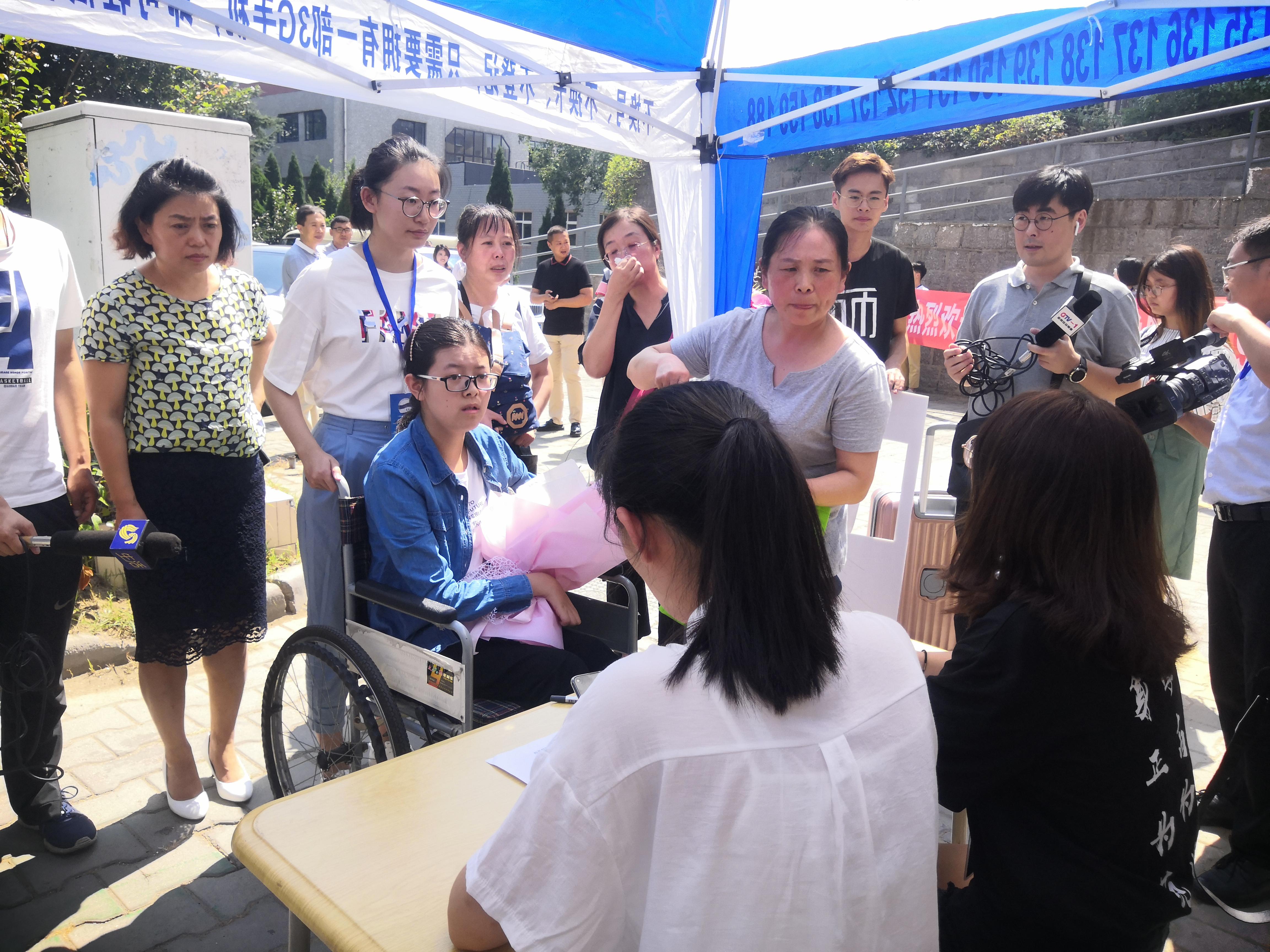 蔡东晓是今年青岛大学迎来的第一名新生,身体有些不便,但她还是坚持用手机完成了报到。学校也专门开通了绿色通道,不到五分钟就办完了报到手续,蔡东晓领取到了学生证、宿舍钥匙,成为了青岛大学的一员。
