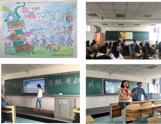 中午12:20,在何京玉老师的主持下交流会正式开始,首先是考研同学进行分享,由成功保送西南大学学前教育学专业的姜晓,考取山东师范大学学前教育专业的丁国香,青岛大学学前教育专业的姜阳、杨娟,重庆师范大学学前教育专业的马玉凤,以及首都师范大学小学教育专业的刘文同学,分别向大家以关于如何选学校和专业以及保研和夏令营的经验,关于学硕统考311复习的建议和方法,关于专硕统考的经验,关于专业调剂的经验,关于跨专业考研的经验为主题进行了分享。