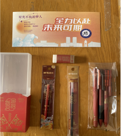 随后,学工人员为全体考研同学送上美好的心意——“全力以赴,未来可期”暖冬考研礼包,礼包中包含考试专用涂卡笔、中性笔、笔芯等考试用具,老师们对全体考研学子附上寄语卡片:星光不负赶路人,师范博天堂 祝所有考研学子,旗开得胜,马到成功!