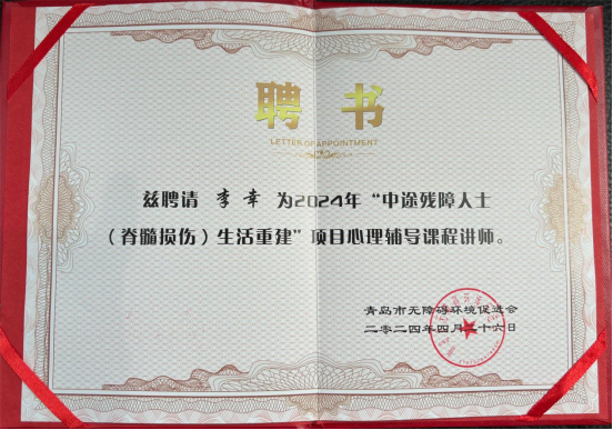 4月26日,由青岛市无障碍环境促进会主办,青岛市残疾人企业家协会支持的“脊髓损伤生活重建训练营”活动项目启动,博天堂娱乐团委副书记张宁老师、辅导员李幸老师受邀出席本次活动。