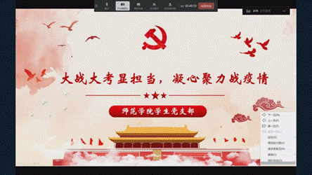 2020年3月18日晚,师范博天堂 学生党支部通过钉钉网络平台开展以“大战大考显担当,凝心聚力战疫情”为主题的主题党日活动,学生党支部书记赵炜、团委书记李萌萌、辅导员孙振红以及全体学生党员参加本次活动。