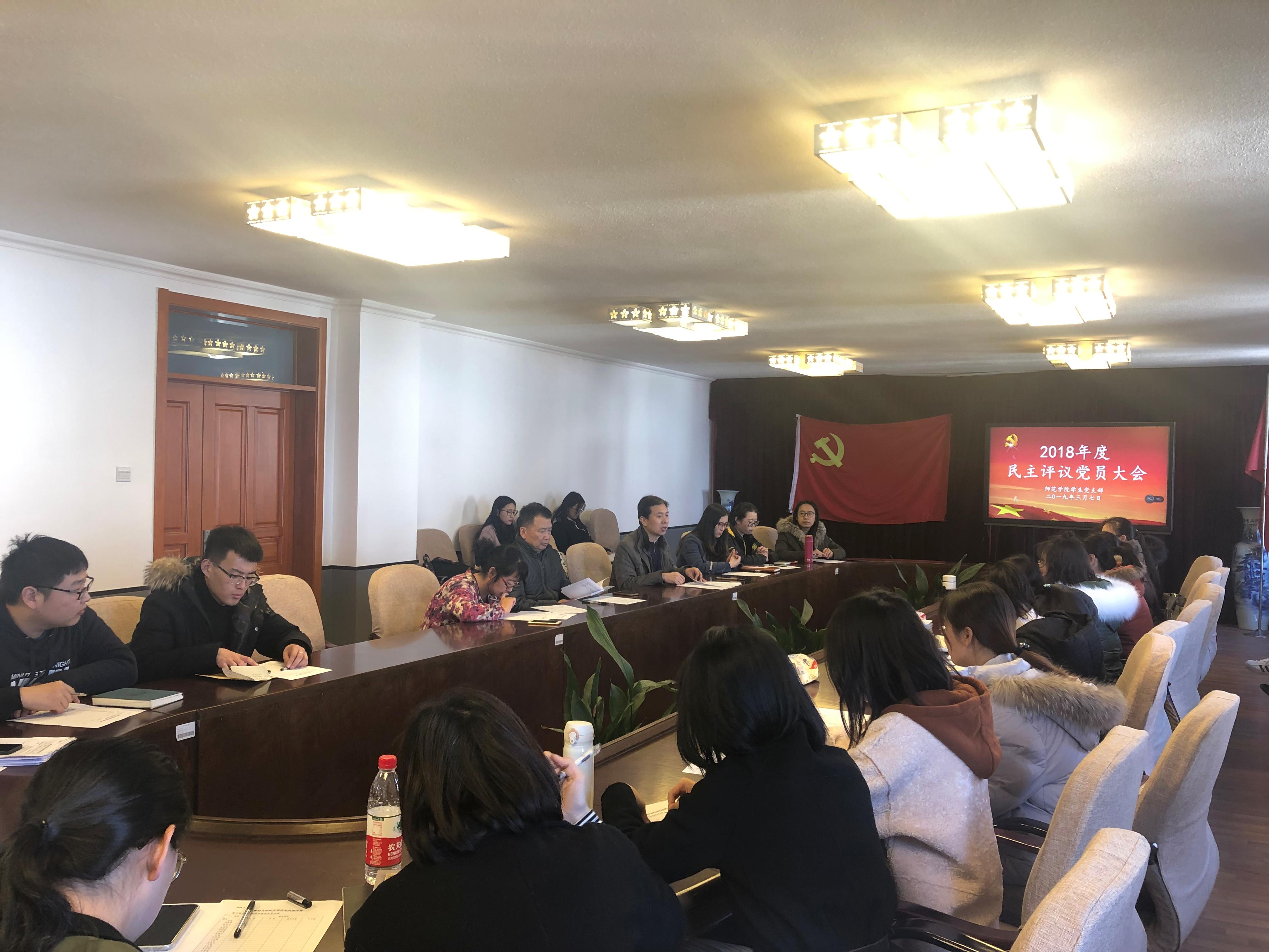 3月7日下午,师范博天堂 学生党支部于德润楼301会议室召开2018年度民主评议党员大会,校党委组织员徐炜光参加会议,会议由学生党支部书记赵炜主持。