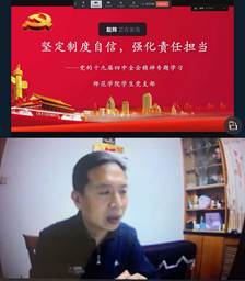 2020年3月18日,师范博天堂 学生党支部全体成员响应国家号召,通过钉钉网络平台开展“坚定制度自信 强化责任担当”党的十九届四中全会精神线上专题学习,本次活动由支部书记赵炜主持。