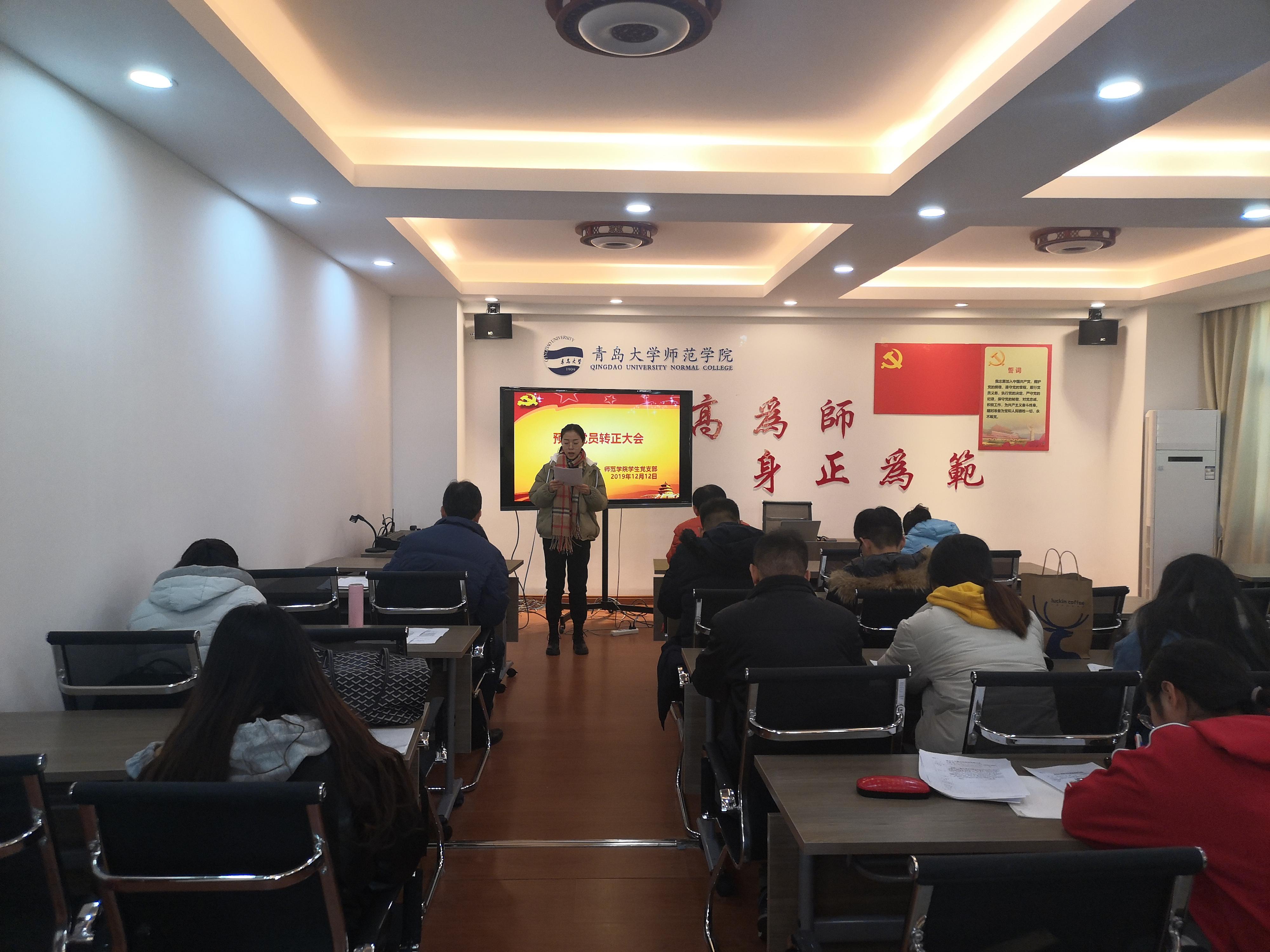 12月12日,师范博天堂 学生党支部在德润楼201会议室召开预备党员转正大会。支部全体学生党员和预备党员参加,会议由学生党支部书记赵炜主持。