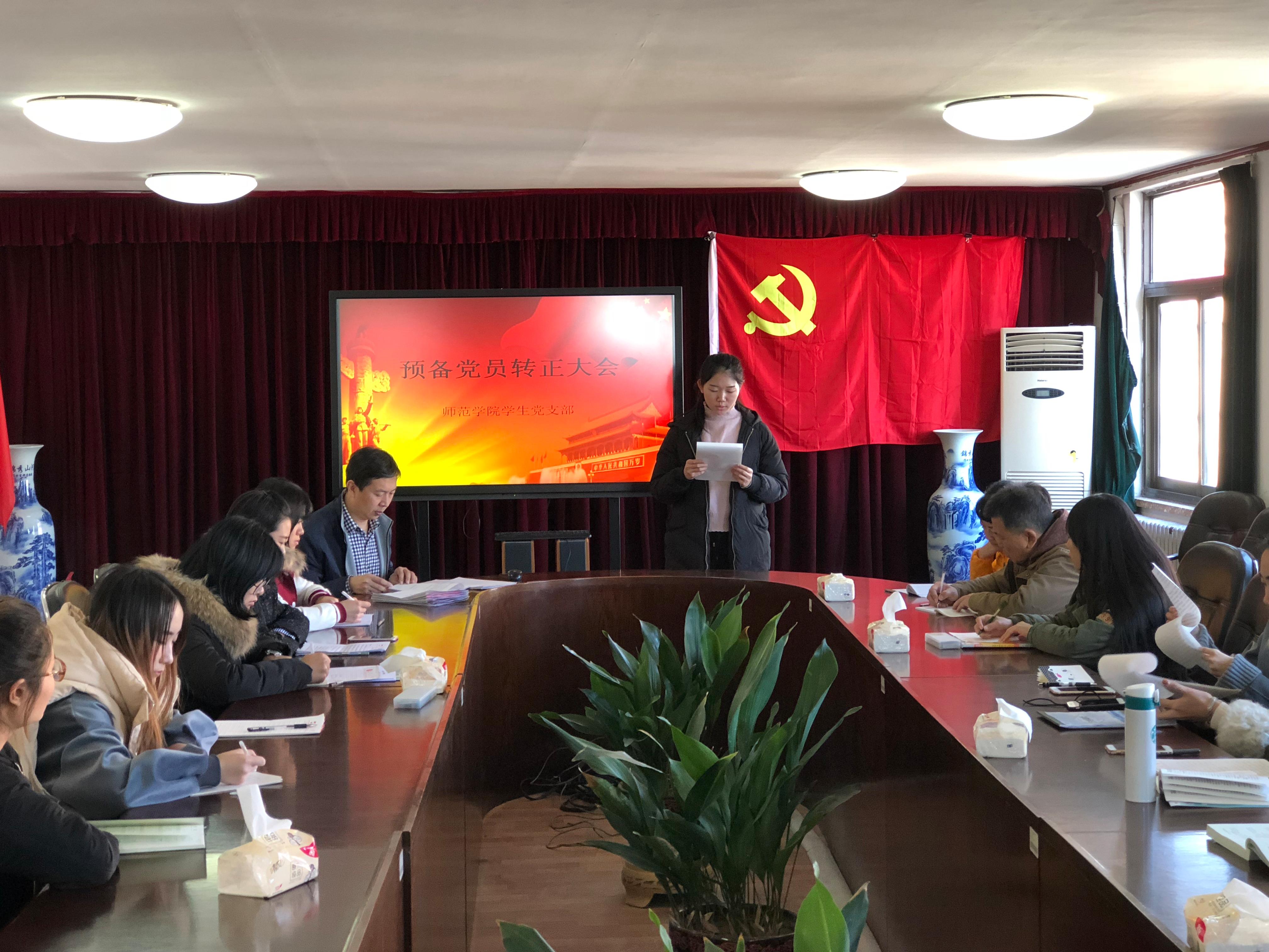 学生党支部全体成员在德润楼301会议室召开了预备党员转正大会,会议讨论了薛悦、姜晓、赵珊、王辉、林海倩、刘快6名同志的转正申请,大会一致同意薛悦等6名同志按期转为中共正式党员。