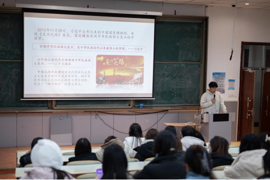 随后,贾传发对筑梦部分进行讲解,他通过分析西方式现代化和中国式现代化的区别,加深学生对中国式现代化的理解,引导学生深入了解中国式现代化的内涵和特点,明确中国式现代化是区别于西方的现代化,基于中国国情的现代化模式。