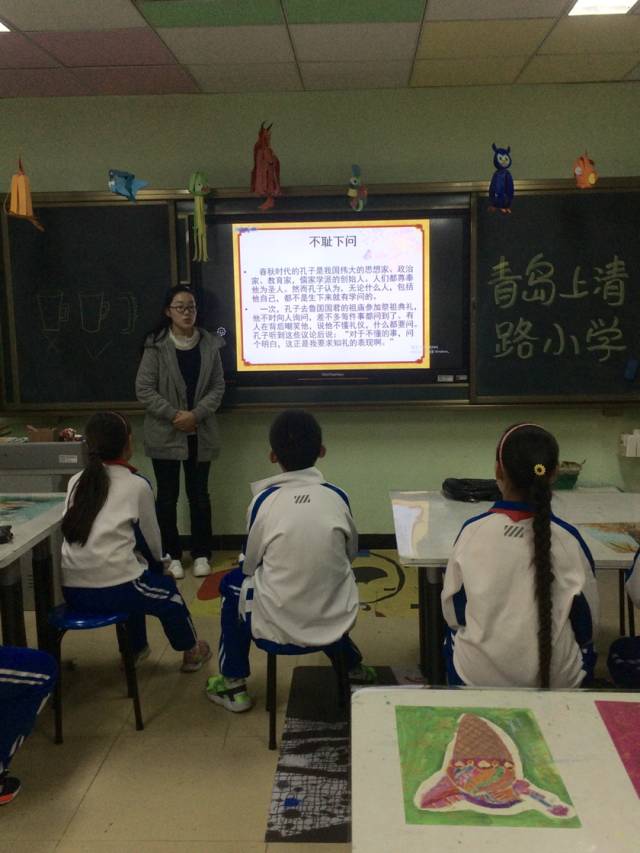 徐冲先后为大家讲述了指鹿为马、一鸣惊人、不耻下问、后生可畏四个成语小故事,同学们全神贯注地听着,对老师提出的问题争相抢答。
