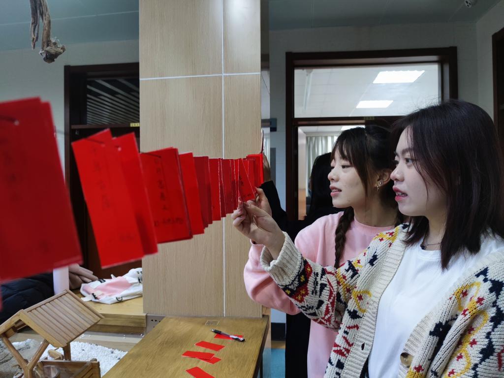 体验活动丰富多彩,令人目不暇接。同学们既可以静心体验传统意韵的书法,抒情达意的扇面画,独具艺术风格的手工编织、剪纸、灯笼,传统精美的发簪,又可以大饱口福,尝一尝造型可爱、甜蜜香甜的糖画、椪糖,绕一绕五颜六色的棉花糖,品一品清香怡人的金骏眉、铁观音,进而试一试富有挑战性的投壶,猜一猜有趣烧脑的灯谜。