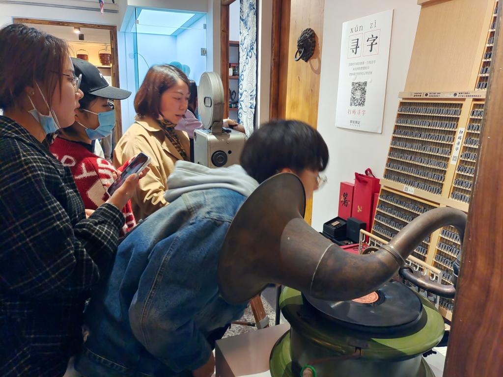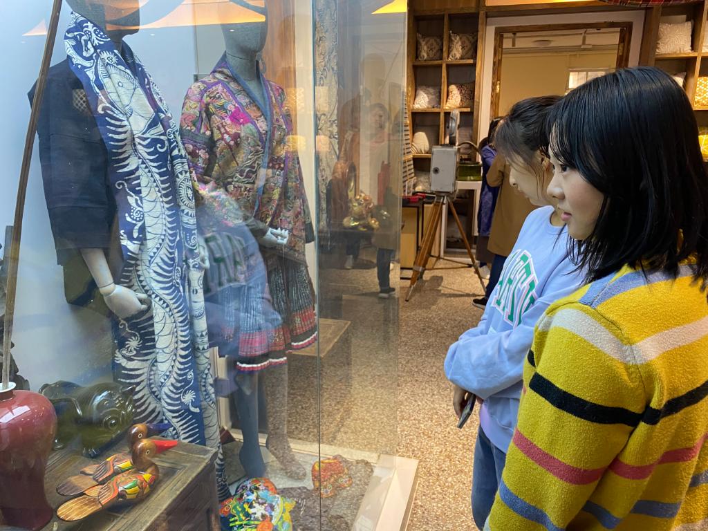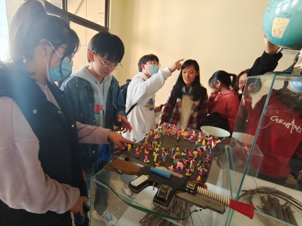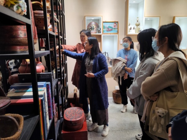 同学们近距离地观赏了工艺精湛的拔步床、形状各异的食盒、做工精美的壶套、花色不同的鱼盘、精美的织锦工艺品、栩栩如生的面塑和焕发新机的雕版印刷等民间艺术。富有童趣的生活物件令同学们目不暇接,大开眼界。