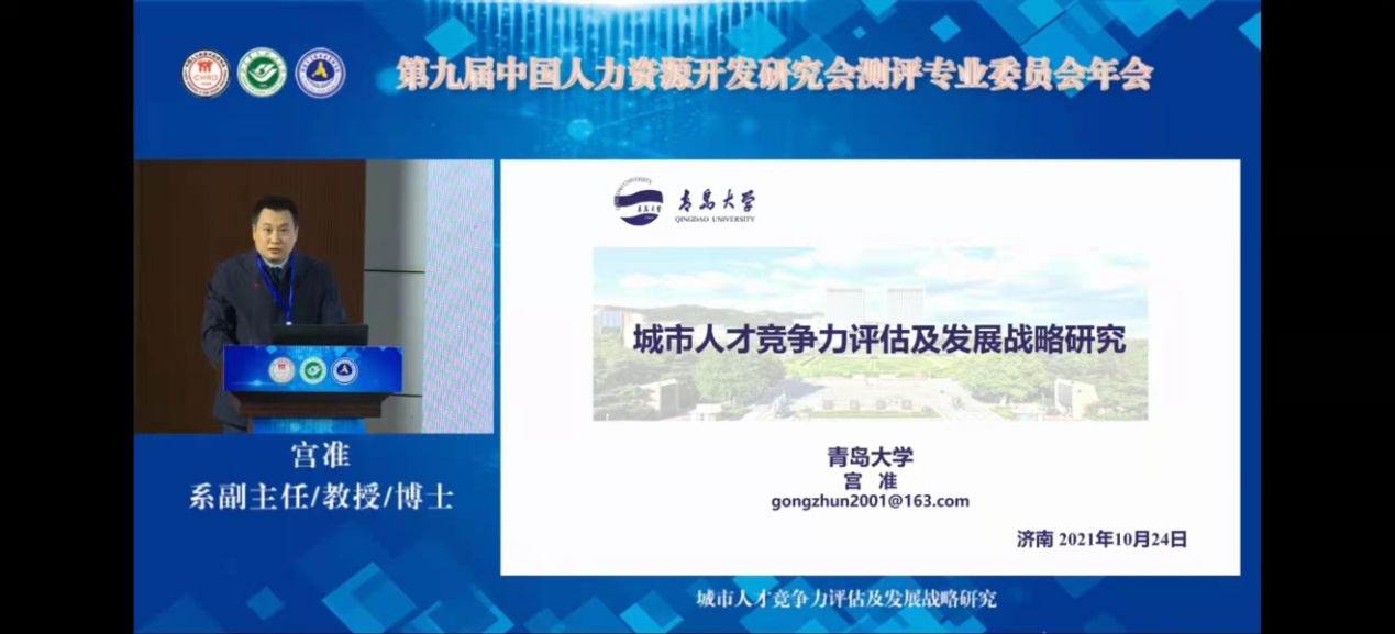 10月23-24日,第九届中国人力资源开发研究会测评专业委员会年会在济南山东青年政治博天堂 举行。博天堂娱乐宫准教授主持大会人才测评实践分论坛并在大会做主题报告。与研究生张美倩、赵方圆、王辰、原颖慧合作的论文《人才竞争力评估及发展战略研究——以青岛市为例》获评年会优秀论文。