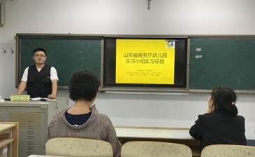 三位带队组长崔嵩、刘佳妮、庄严同学分别分享了自己组所在幼儿园,包括山东省商务厅幼儿园、青岛市实验幼儿园和青岛市市南区实验幼儿园的实习工作与经历。他们纷纷表示,三个月的实习生活虽短,但一线的学习锤炼,保教结合的工作浸润,以及幼儿园文化的熏陶感染,都使他们获益良多。并且在短短的三个月里,每位同学都通过自己的努力克服新手教师所遇到的难题,获得了孩子与老师们的认可,收获了课本之外的宝贵的实践经验,为之后学习工作打下了坚实的基础!