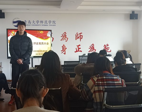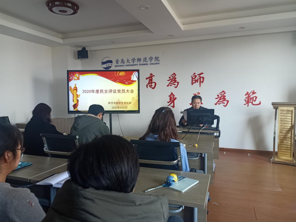 3月5日下午,师范博天堂 学生党支部在德润楼201会议室召开了2020年度民主评议党员大会,支委会宣传委员张宁主持会议,党支部书记赵炜及全体支部成员参加会议。