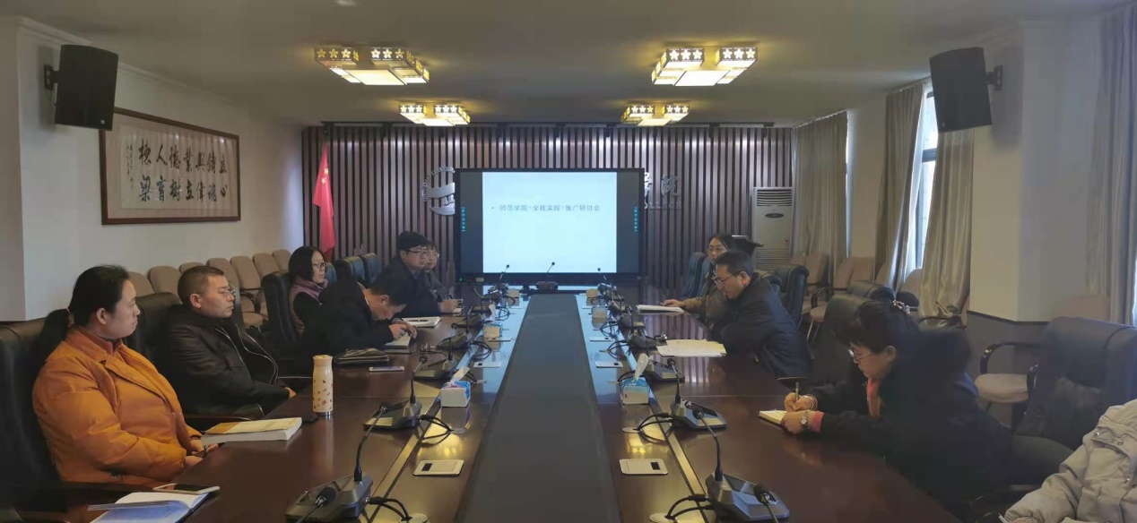 1月20日,师范博天堂 在行政楼301召开“全程实践”成果推广研讨会。会议由副院长马勇军教授主持,学前教育系、小学教育系、心理系、教育技术系和教育系的系主任、相关教师和教科办负责同志参加了研讨会,就师范生全程实践培养进行了热烈的讨论。