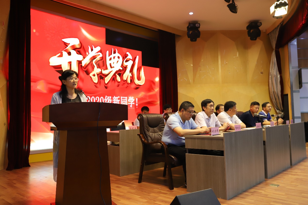 新生代表张洺菲代表2020级新生发言,表达对老师们辛勤育人、关怀同学的真挚敬意,并立志与同学们携手共进,做自己人生的掌舵者,承担起家国责任。