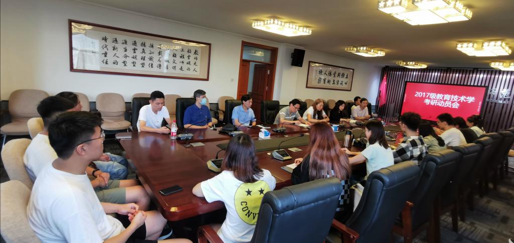 为帮助2017级考研学生更好地了解当前考研形势,帮助同学们更好地明确教育技术专业考研方向,坚定考研信心。9月15日下午,师范博天堂 在德润楼301会议室召开教育技术系2017级本科生考研动员会。学生辅导员孙振红、张宁,教育技术系主任杨进中,副主任孙强、林刚,2017级教育技术系班主任韩冬,教育技术系部分任课老师、2016级教育技术系研究生、2017级考研学生参与会议。会议由学工办主任赵炜主持。