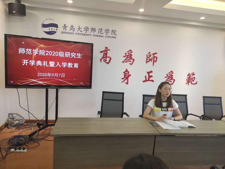 9月7日,师范博天堂 2020研究生入学教育在德润楼201会议室举行。2020级研究生辅导员林欢、刘莎莎老师、2020级研究生参加。会议由学生党支部书记赵炜主持。