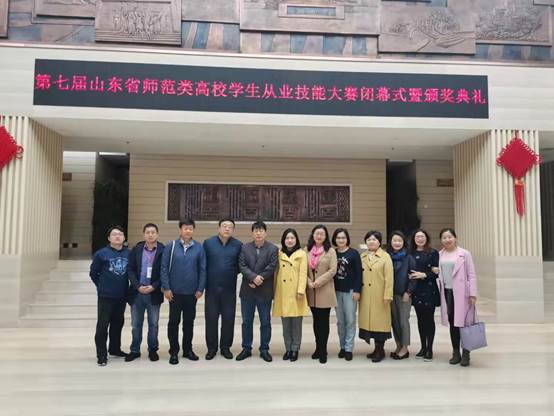 2019年11月6日-10日,第七届山东省师范类高校学生从业技能大赛在烟台鲁东大学举行。我校初中化学组吕昊鑫、小学英语颜佳琪等五名同学获得一等奖;小学教育组杨诺等二十名同学获得二等奖;初中地理组蔡雨凌等十二名同学获得三等奖;张晓明等五位老师获得优秀指导教师奖;我校获得优秀组织奖。