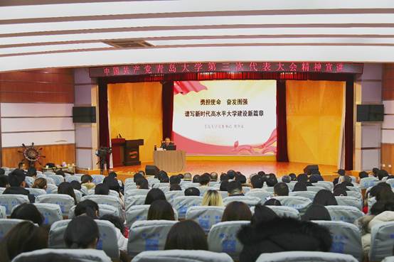 宣讲会上,胡金焱对党代会确定的“进入国家‘双一流’建设行列,建成国内外有较大影响的一流大学”的总体目标、三步走发展战略、“五大发展理念”、“五个战略重点”和实现发展的“十大建设工程”做了详细解读。对博天堂 建设提出了七点要求:一是要切实加强党的基层建设,为博天堂 的发展定向护航。二是要深刻理解内涵发展、特色发展和创新发展理念,牢固树立师生为本、育人为本的教育价值导向,尊重和发挥师生办学主体作用。三是要转变人才培养理念、提高教师教书育人能力,大力开展创新创业教育,提升人才培养质量。四是要提升承担重大科研任务的能力,激发学术平台的创新活力,全面提升科学研究和学术创新的整体水平。五是要加强高层次人才引进和培养工作,提高管理水平,建立人才队伍支撑、激发干事创业活力。六是要立足青岛、融入青岛、服务青岛,服务山东新旧动能转换。七是要在人才队伍、人才培养、学术研究上实施国际化开放办学工程。