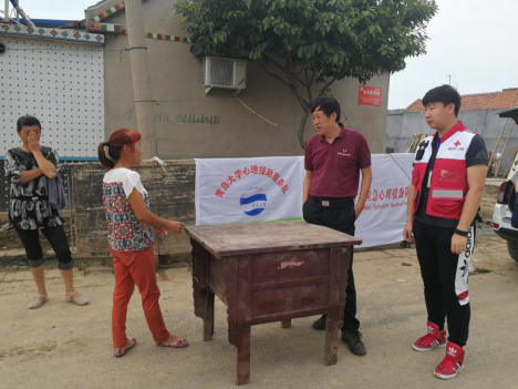 通过走访了解到,口子村是19号晚上十一点左右组织村民抗洪,第二天清晨组织大家撤离,有些人亲眼目睹了自己的家被淹,刚刚晒好的农作物和宝贝拖拉机被洪水冲走,心里的疼痛是其他人体会不到的,难免留下了一些心理创伤。上午咨询的对象中有些中年村民说到这次经历,难过地留下了泪水,农民收入低、种地辛苦,洪水相当于毁了几年的拼搏付出,而中年群体正处于身上担子最重的人生阶段,所以及时地心理疏导不仅是对物资救援的有效补充也是灾区重建的重要环节。洪水给老百姓心理带来的阴影一时是难以消除的,我们将结合齐鲁乡村振兴社会服务体系建设中服务对象定级和服务模式等内容,对需要重点关注的咨询对象建立心理档案,进一步跟踪服务。