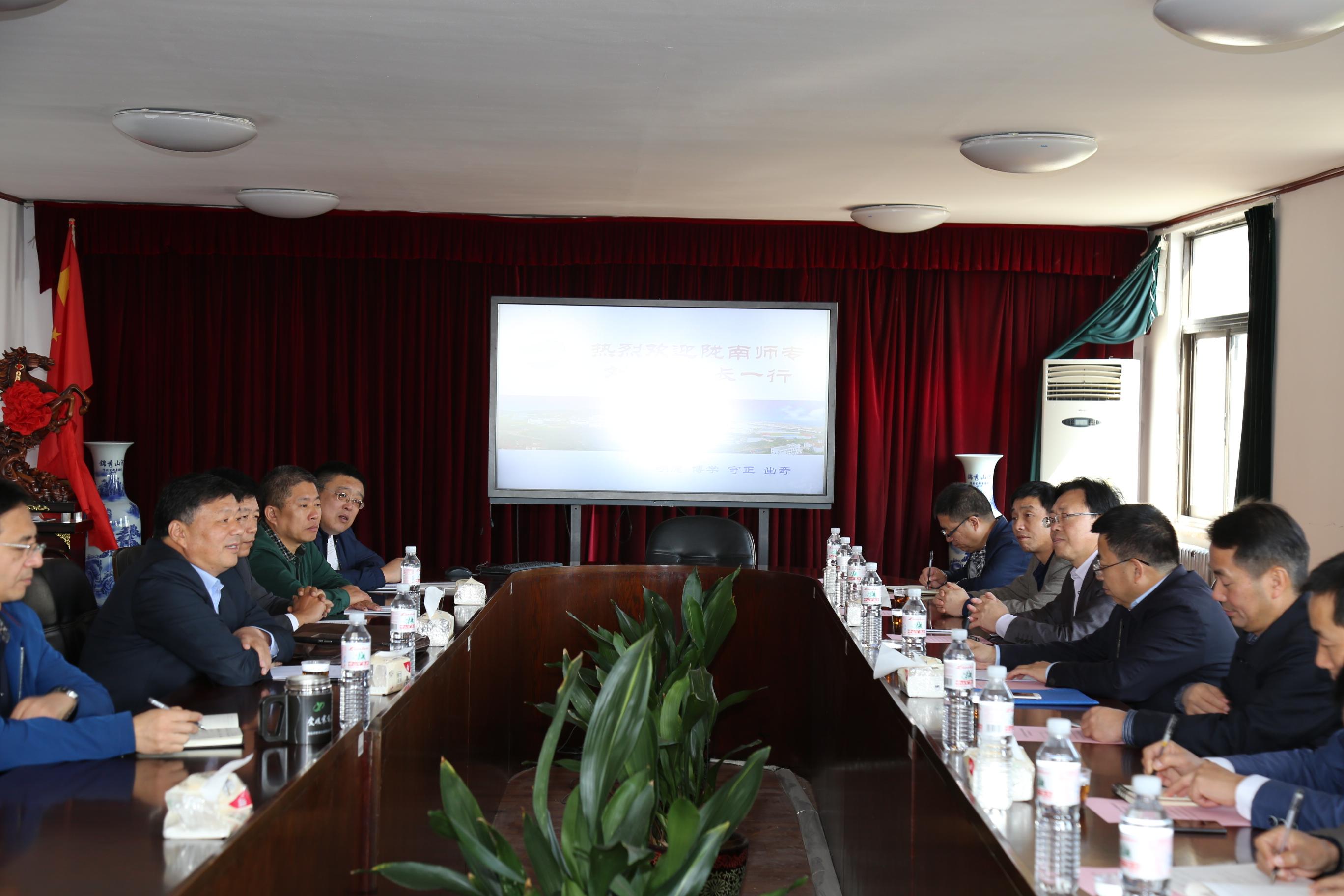 10月25日上午9:30,甘肃省陇南师范高等专科学校刘先春校长一行8人来我师范博天堂 交流。
