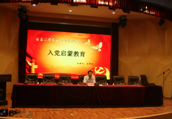 党委书记宋贵欣老师为全体新同学们上了一堂“入党启蒙教育”专题课。宋书记指出,大家在以前的学习生活中,接触的大部分是共青团的教育。上了大学,便要逐渐给大家普及党的知识了。大家要心怀理想、志存高远,要树立正确的思想观念,以实际行动积极向党组织靠拢。宋书记详细地介绍了党的性质,共产党的发展优势等。给新生们上了一堂非常好的入党启蒙教育课,相信大家对中国共产党又有了进一步的认识。