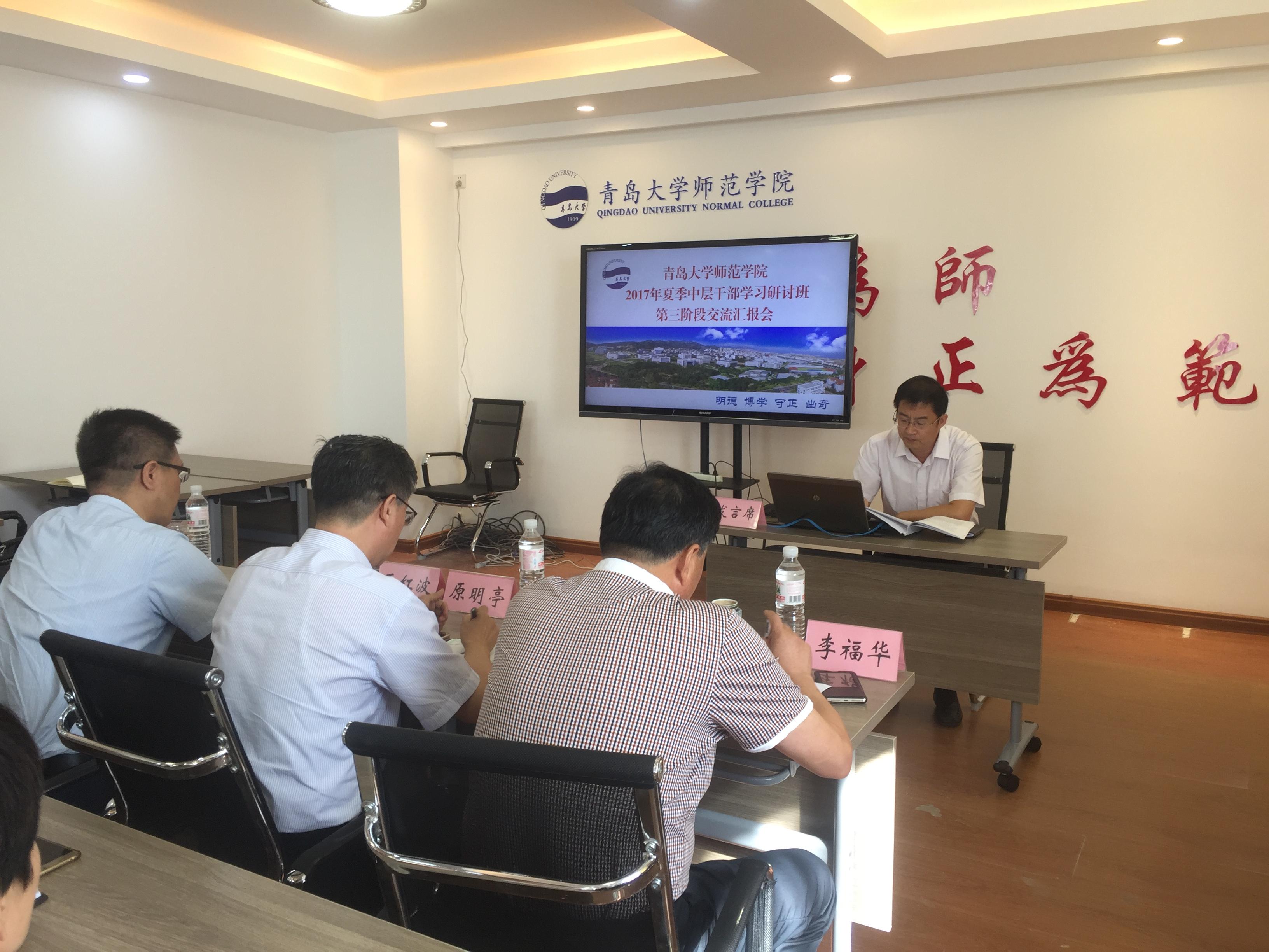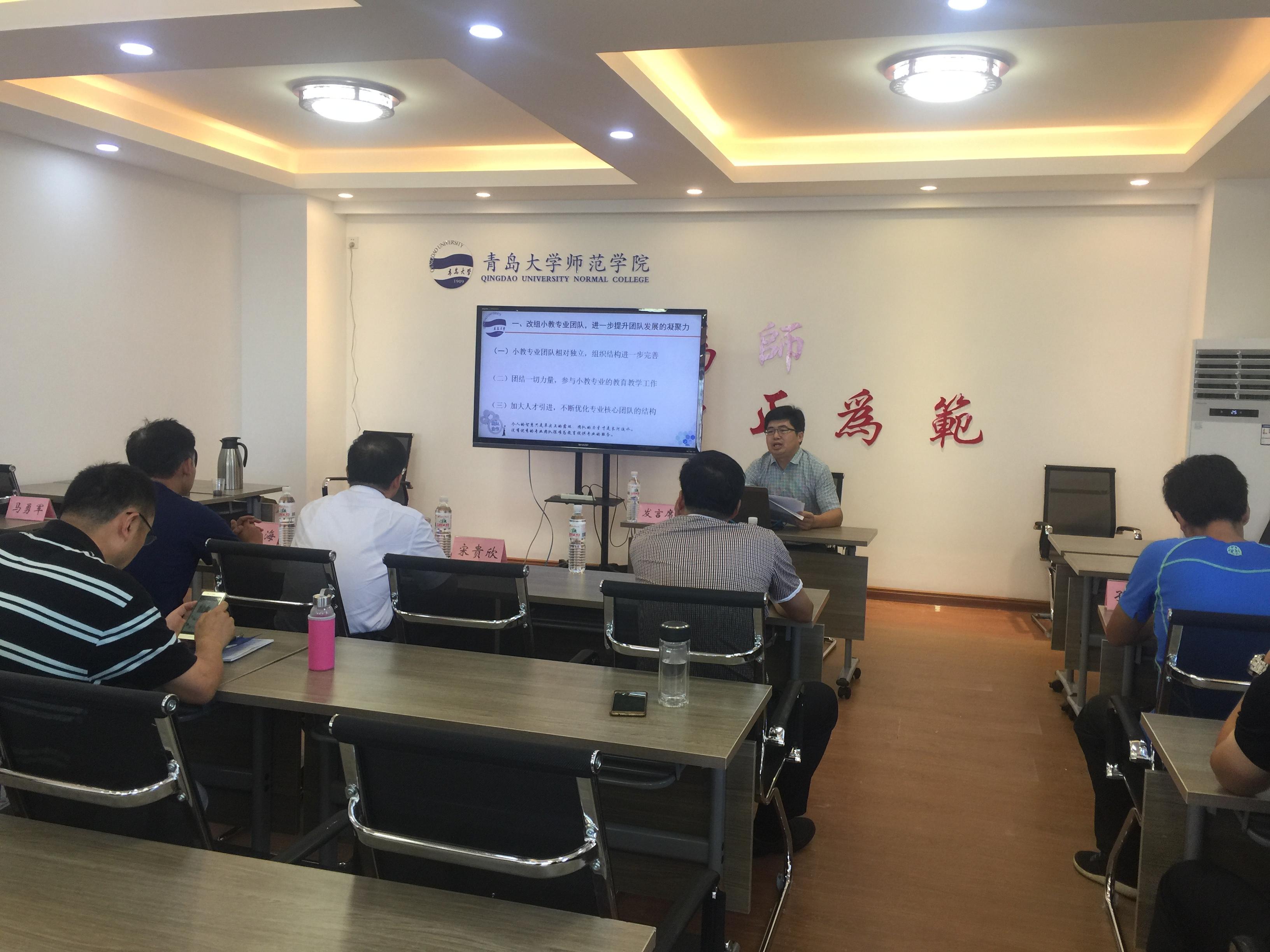 会上,宋贵欣书记传达了学校党委全委(扩大)会议暨2017年夏季中层干部学习研讨班第二阶段会议精神,李福华院长作了《以学科建设为中心、提升博天堂 学术地位——双一流背景下师范博天堂 发展之道》的主题报告,分析了博天堂 当前的优势与不足,提出今后的工作思路和目标。博天堂 各分管领导和有关部门、系负责人分别以科学研究、招生就业、专业建设、教学改革、服务青岛、教师教育等为主题进行了交流研讨。于红波主任分享了参加师范博天堂 研讨会的体会。