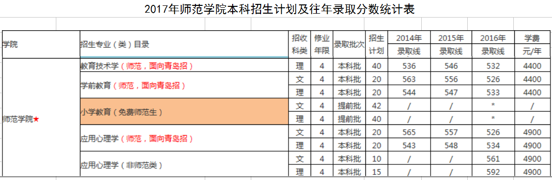 2017年师范博天堂 本科招生计划及往年录取分数统计表