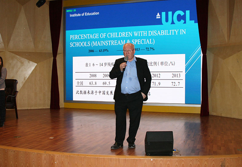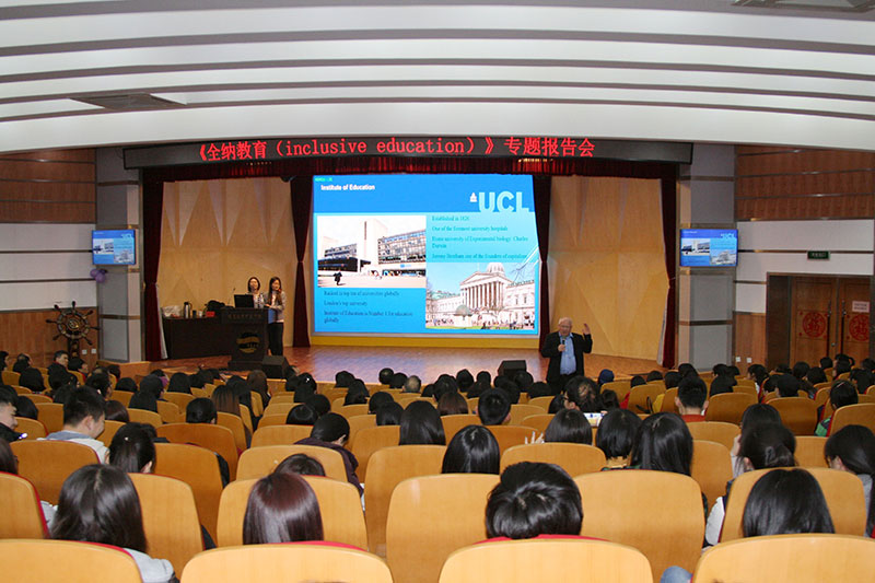 3月24日下午,伦敦大学教育博天堂 Steven Cowan博士应邀到师范博天堂 作《全纳教育(Inclusive Education)》专题报告,博天堂 领导及300余名师生聆听了报告。 报告会上,Steven Cowan博士结合中国实际和最近的走访,运用详实的数据介绍了中国残疾儿童受教育的现状,解析了当下中国残疾儿童在教育公平、机会均等方面存在的问题,由此探讨了残疾儿童全纳教育这一重要课题。他说,每个孩子的学习方式、学习速度不一样,不应该用一把尺子去衡量他们;所有类型的孩子都可以在同一所学校上课,他们享有同等的受教育的权利;每一个孩子都是不同的,都有各自独特的特性、兴趣、能力和学习需求,这些不同不应该成为歧视和排斥学习或行为有问题的学生的理由。演讲结束后,现场师生还就中英教育的差异、小学如何更好地引入全纳教育、全纳教育如何保证课堂教学等问题进行了提问,Steven Cowan博士幽默风趣地进行了解答,现场不时响起热烈的掌声。整个报告会持续了两个小时,现场互动频繁,气氛友好热烈。这次全纳教育专题报告不仅让师生开阔了视野,也让师生对残疾儿童全纳教育问题有了更多思考,可以说是一次教育理念的更新和思想火花的碰撞,必将对今后的教育教学改革有所裨益。 据悉,全纳教育是1994年6月10日在西班牙萨拉曼卡召开的《世界特殊需要教育大会》上通过的宣言中提出的一种全新的教育理念和教育过程。全纳教育倡导教育的人权观、民主观、平等观和价值观,并提出了其课程的教学观。它主张学校应容纳所有类型的学生,反对歧视和排斥,促进积极参与,注重集体合作,满足不同需求,它是一种没有排斥、没有歧视、没有分类的教育。