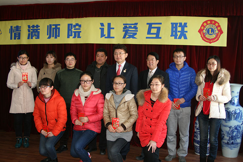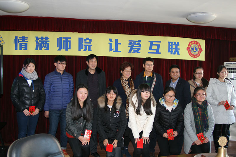 1月19日下午两点,中国狮子会“醒狮”奖(助)学金捐赠暨颁发仪式在师范博天堂 办公楼三楼会议室举行。中国狮子联会青岛会员管理委员会2015-2016年度主席马宣狮兄、校学生处吴世珍处长、师范博天堂 陶明达副院长以及青岛狮子会各位狮友代表和20名获资助同学参加了此次仪式。仪式由师范博天堂 学工办主任赵炜主持。
