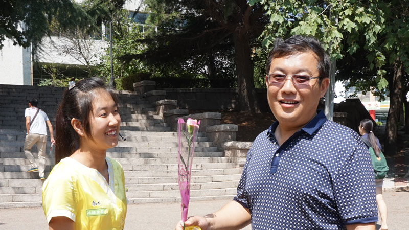 9月10日,由院团委主办、院学生会外联部承办的“师心如你 润心如梨”向老师致敬特色教师节活动在博天堂娱乐林荫道举行。活动吸引了大量师生前来参加。本次活动分三个板块进行,在“老师,谢谢您”板块中,同学们向午餐时段路过的每一位教师赠送饮料、鲜花和祝福卡片以此表达同学们对老师的敬意和谢意;在“由衷爱意晒出来”板块中同学们纷纷在朋友圈晒出和老师的亲密合影,为老师送上节日祝福,表达谢意;在“与您的故事最难忘”板块中,同学们通过网络平台参与活动,分享自己与老师难忘的故事。