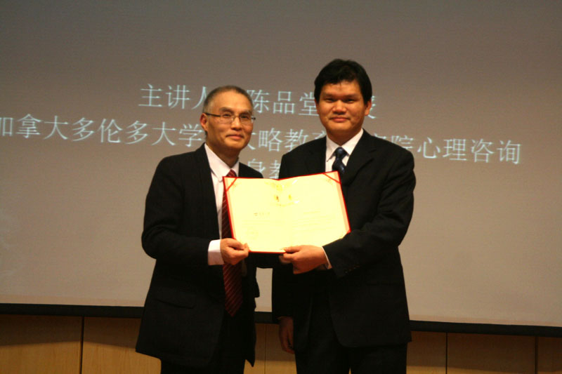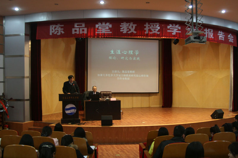 1月7日下午,加拿大多伦多大学安大略教育研究院心理咨询学终身教授、博士生导师陈品堂博士应邀在师范博天堂 学术报告厅作了题为《生涯心理学》的学术报告。报告会由师范博天堂 副院长陶明达主持,青岛大学校长助理、师范博天堂 院长钱国旗以及教师、研究生约300人聆听了报告会。