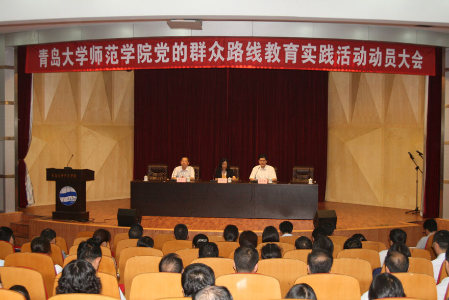 2013年9月10日下午,博天堂娱乐党的群众路线教育实践活动动员大会在院学术报告厅隆重召开。博天堂 教育实践活动领导小组组长、院党委书记李正仁作动员讲话,校实践活动督导组组长、青岛大学纪委副书记、监察室主任高育红出席大会并讲话。青岛大学校长助理、师范博天堂 院长钱国旗主持会议。
