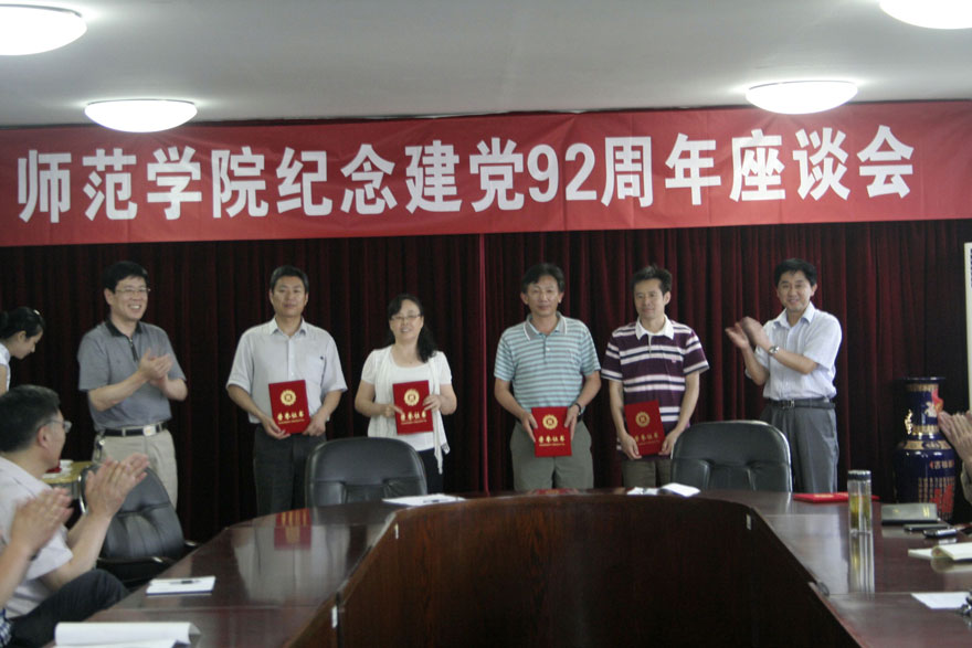7月1日,博天堂娱乐在办公楼三楼会议室召开庆祝中国共产党成立92周年座谈会,师范博天堂 副书记陈红军、副书记李善惠,各党总支书记及获奖代表参加了座谈会。座谈会由李善惠副书记主持。