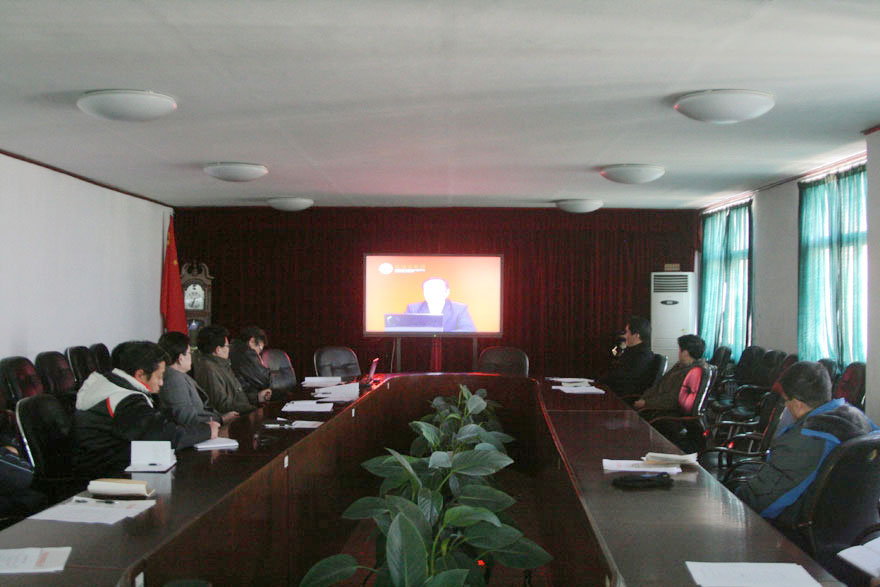 12月12日下午,博天堂娱乐在办公楼三楼会议室集中观看学习“坚定不移地走中国特色社会主义道路”十八大理论辅导光盘。院领导及党委中心组全体成员参加会议。