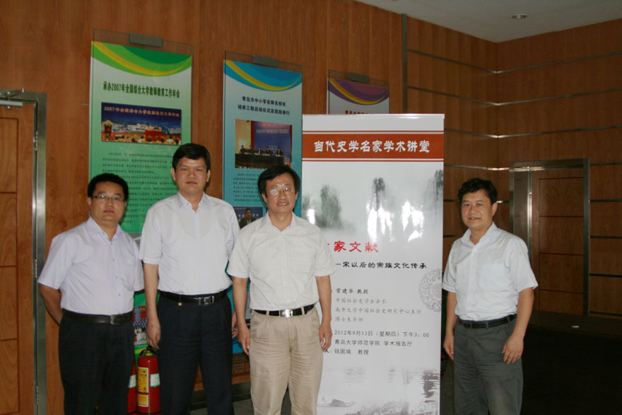 9月13日下午,中国社会史学会会长,南开大学中国社会史研究中心主任,博士生导师常建华教授应邀来博天堂娱乐“当代史学名家学术讲堂”作了题为《故家文献:宋以后的宗族文化传承》的学术报告。报告会由青岛大学校长助理、师范博天堂 常务副院长钱国旗主持,博天堂娱乐部分教师及学生约300人参加了报告会。