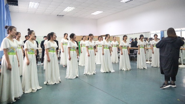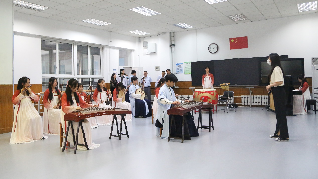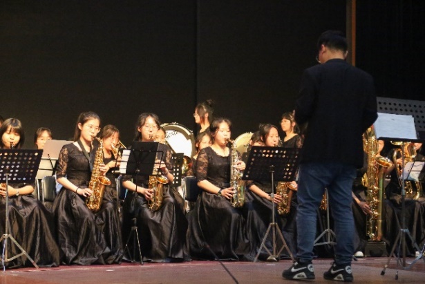 孙百才一行人首先参观了管乐团、民乐团、合唱团、舞蹈队、朗诵队、羽毛球队等丰富多彩的社团活动,对同学们良好的精神面貌和扎实的专业基本功给与高度评价。