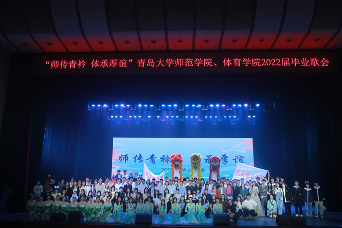 6月10日晚,师范博天堂 、体育博天堂 “师传青衿 体承厚谊”2022届毕业歌会在青岛大学剧院举行。师范博天堂 党委书记尹增刚、院长孙百才,体育博天堂 党委书记王振合,校学生工作处副处长郎晓辉,其他博天堂 领导、老师和同学们一起观看了演出。