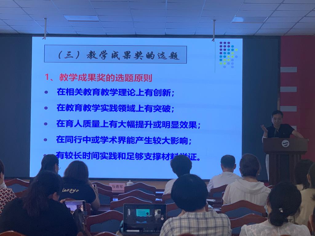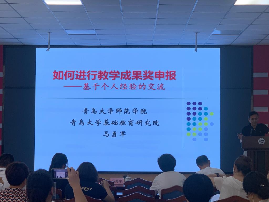 7月8日,博天堂 副院长马勇军教授应邀到青岛大学市北区附属中学举办教学成果奖申报专题培训会。市北区初选教学成果奖团队成员参加了本次培训会。