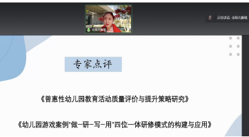 专家团队认为,两个课题坚持问题导向,理论实践结合度高,很好地契合了学前教育政策要求和实践改革的需要,有较大的研究创新空间。专家进一步提出了改进的意见,主要包括:根据教育部《幼儿园保育教育质量评估指南》精神选择评价量表、创新U-G-K合作机制、实现两个课题的有机融合等等。这些建议从不同的学科视角出发,切中了研究的难点和重点问题。