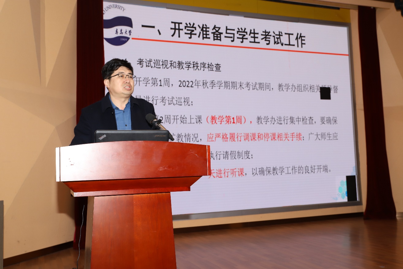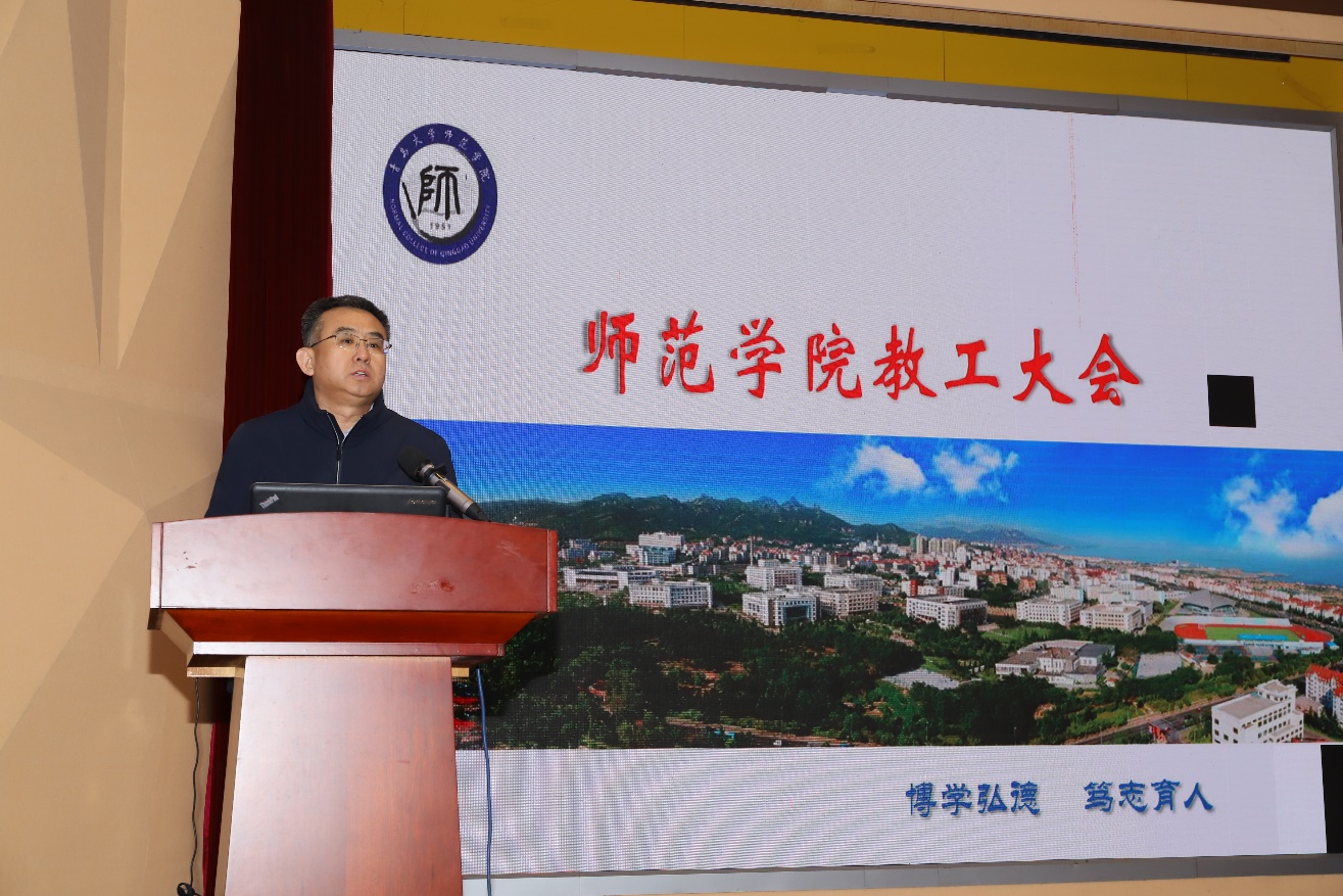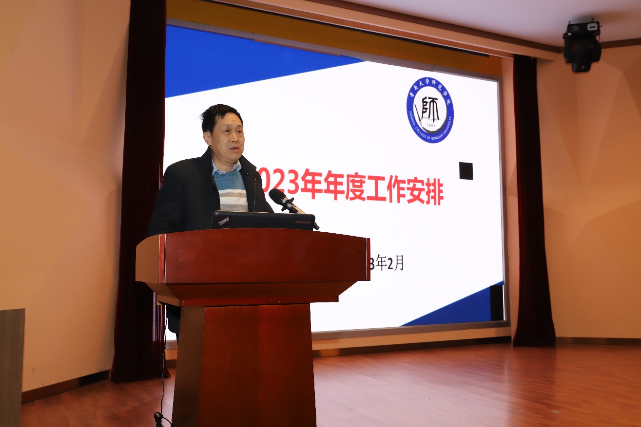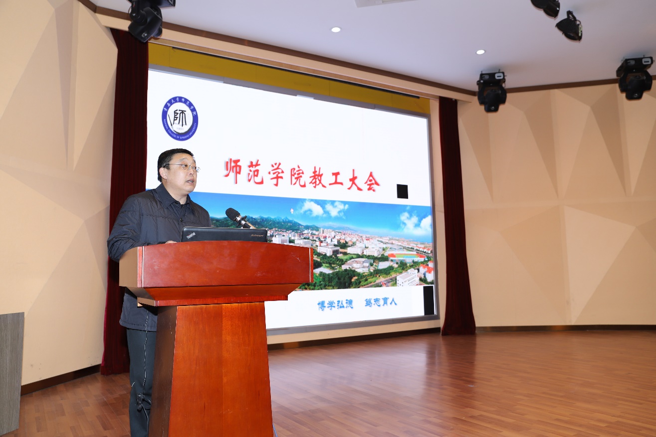 2月23日下午,师范博天堂 在学术报告厅召开全体教职员工大会,传达学习学校春季学期中层干部研讨班、学校第六届教职工代表大会暨工会会员代表大会第五次会议(双代会)会议精神,布置2023年度博天堂 重点工作。会议由副院长刘启民主持。