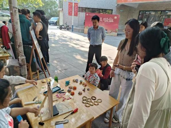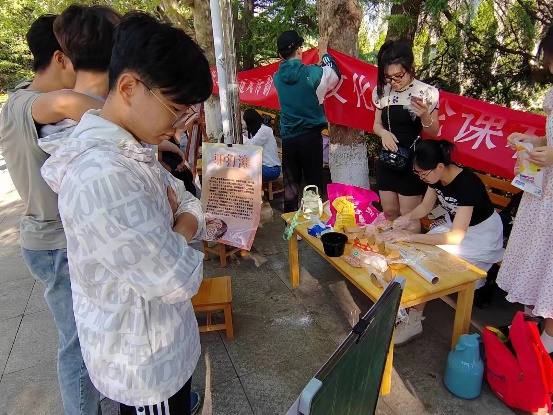 络绎不绝的人流被吸引挽留在摊位前,体验传统文化的独特魅力。在摊主的演示之下,所有的来客都得以携满意之作而归,来客与传统文化的距离也在悄然无声中拉近。同学们也在准备、展示和讲解的过程中与传统文化面对面、手牵手,建立起更深厚的羁绊和联系。