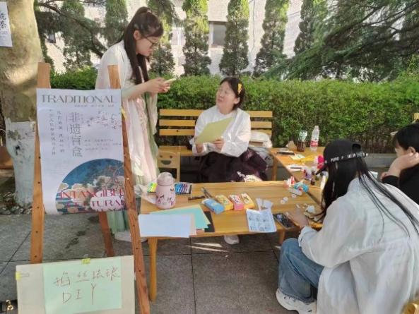 5月11日下午,学前教育系孙欣老师带领2022级学前教育G班同学,在浏园餐厅门口,举办了第五届“非你莫属,遗风传韵”传统文化推广暨中国文化概论课程实践活动。