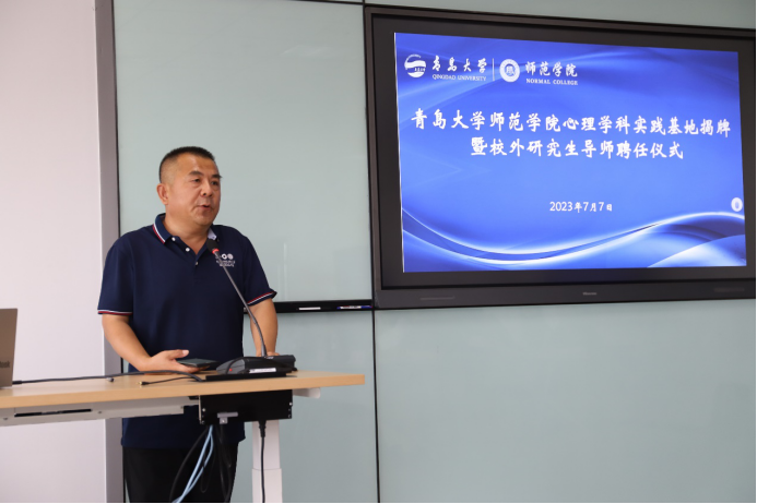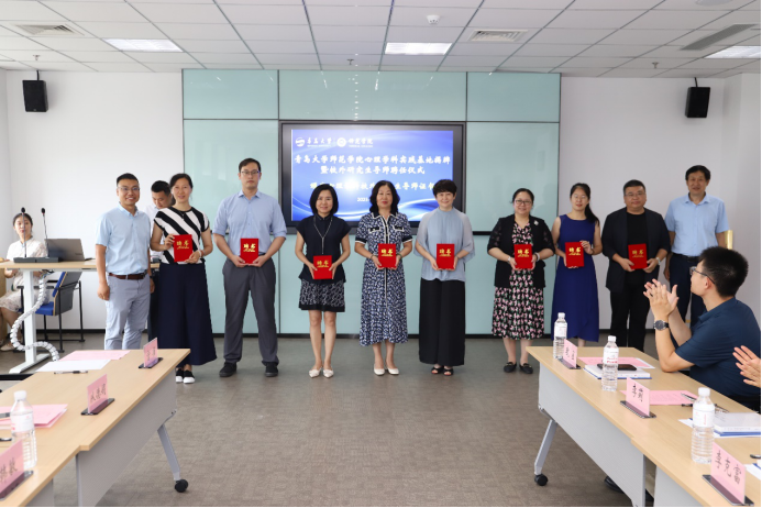 在随后举行的校外研究生导师聘任仪式上,陶明达和院长助理张克顺教授为导师们颁发了聘书。本次新近获得聘任的校外合作导师有:青岛市第五中学书记牛丽明、青岛城阳国开双语学校校长李华、青岛洮南路小学书记校长孙文欣、新阳光心理研究所所长李克富、青岛中学心理中心主任张磊、青岛市市南区教育研究中心家庭教育教研员从德娟、青岛市崂山区教育科学研究室心理教研员傅大坤、青岛市第五十九中学心理教师于明东、青岛太平路小学教师于彦等共计11名,导师们纷纷表示,将以此为契机,积极参与学生的实践活动,并为学生的就业和职业发展提供支持和帮助。