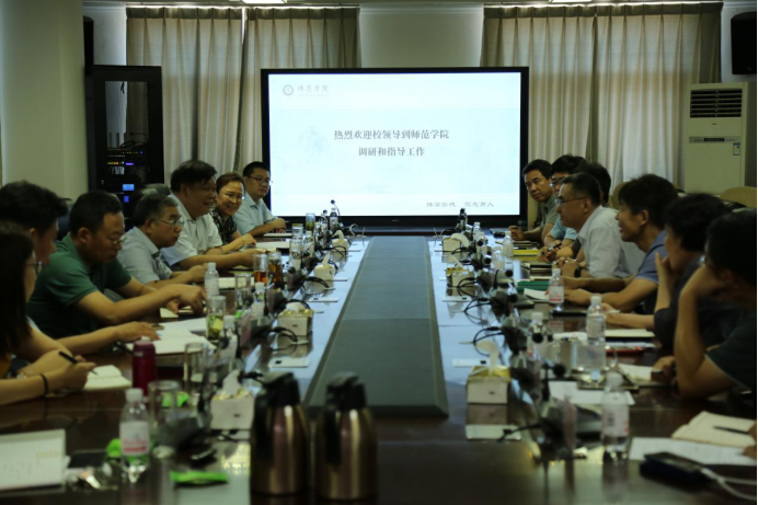 8月9日下午,校党委书记胡金焱,副校长李荣贵一行到师范博天堂 调研。党委办公室、校长办公室、人力资源处、人文社科处、研究生院、师范教育办公室等部门(单位)负责人陪同调研。师范博天堂 党委书记尹增刚主持汇报。
