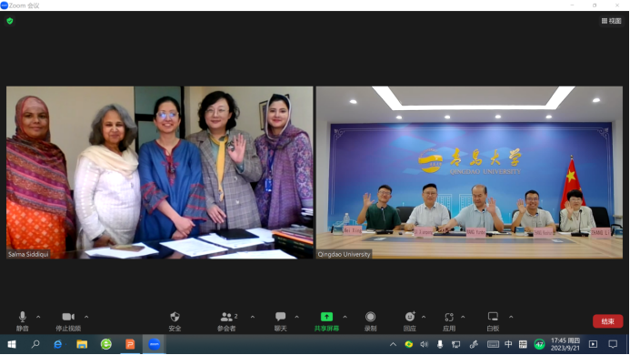 会上,汪运波和Salma Siddiqui分别介绍了青岛大学和巴基斯坦国立科技大学的基本情况。经过沟通交流,双方对在心理学科各领域开展学科交流、师生互访、合作研究,以及建立中巴心理学联合实验室等方面达成初步意向。